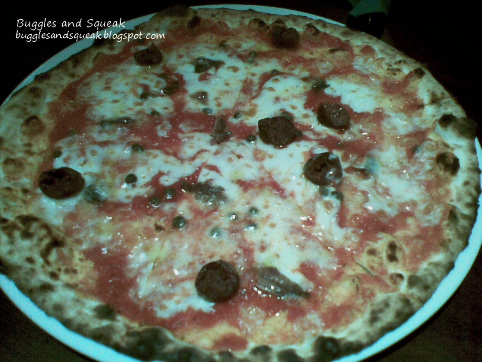 Next up were the olives fritte, black olives coated in batter & deep fried. I found these very moreish & it was only after a while, that I realised I was popping them into my mouth one after the other without stopping for breath. I had probably eaten about five of them before I figured that Buggles hadn’t had any. When Buggles finally managed to push my hand out of the way & secure one for herself, she wasn’t as impressed, she thought there was too much batter, not enough olive. I gladly polished off the bulk of this dish.